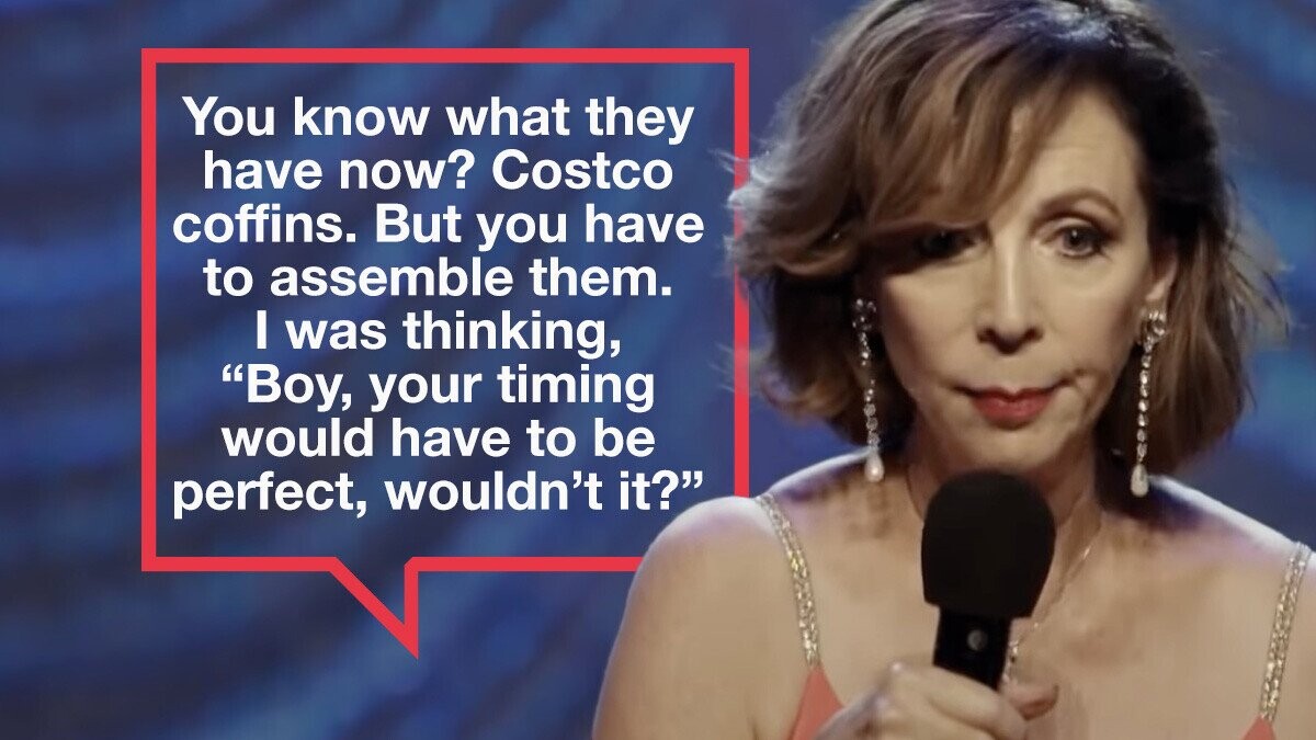 “Costco has everything! They don’t stop. You know what they have now — they have Costco coffins. But you have to assemble them. I was thinking, ‘Boy, your timing would have to be perfect, wouldn’t it?’”