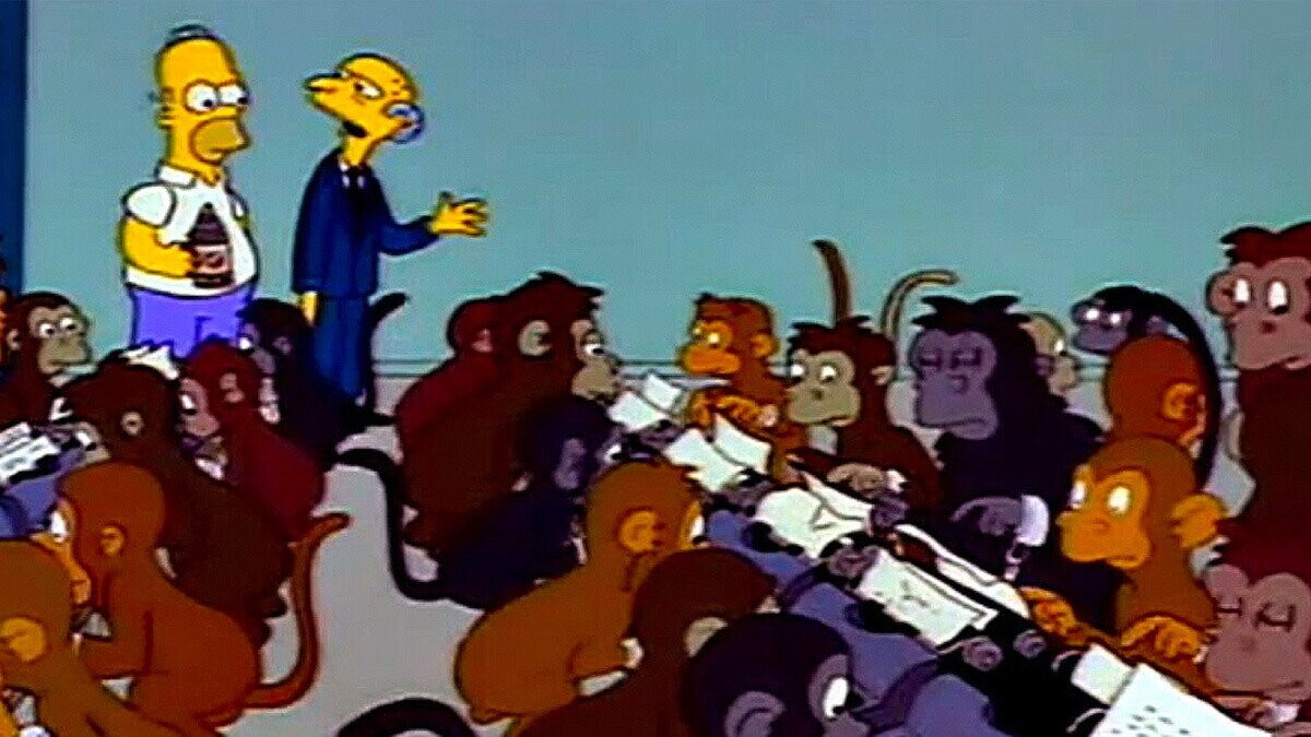 As much as I love monkeys, I never need to hear this tired-ass “thought experiment” ever again. It’s one of a whole smorgasbord of hypothetical situations created to constantly try to reinforce the idea that yes, infinity really does mean infinity. It’s a delightful mental picture, but it’s wholly unnecessary. If someone doesn’t understand that infinite time creates infinite possibilities, best of luck to them. If the idea of infinite timelines, something that’s a core part of a blockbuster Avengers movie, is too powerful for their brain, I think it’s time to let them continue trying to successfully complete a single crossword puzzle.