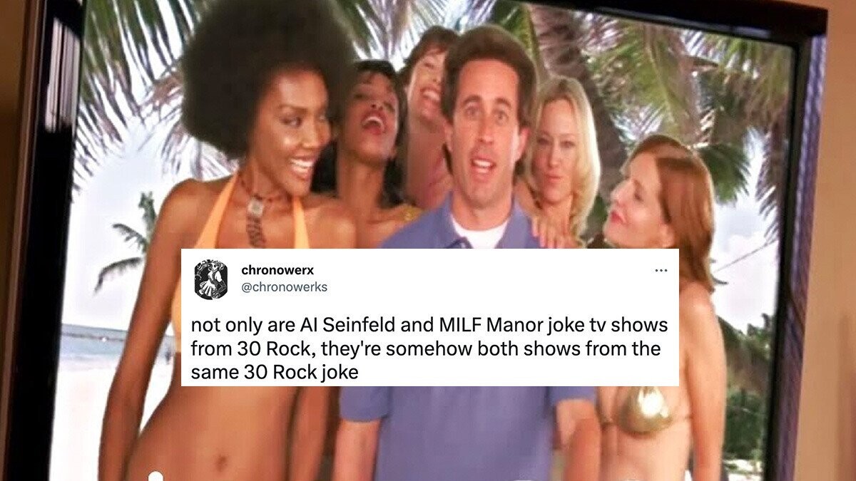Back on 30 Rock, another virtual Jerry makes a pitch for MILF Island, a reality show concept so preposterously hilarious that of course some TLC network doofus had to greenlight it for real.
