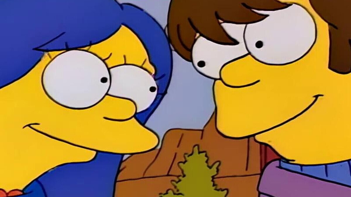 The Love Story: Homer and Marge have been dating for about 10 years. Marge has just been accepted into Springfield University and develops feelings for one of her professors. Homer is a part of an R&B group that becomes a grunge band when Homer starts dealing with his anger over Marge’s wandering eye. They break up for the first time. Homer’s group gets big and Marge dates her professor, but she dumps him when he reveals he doesn’t want to ever get married. Homer deals with addiction, but he and Marge reunite and conceive Bart on the mini-golf course, retconning the brief buildup to Bart’s conception in 1991’s “I Married Marge” (see below).