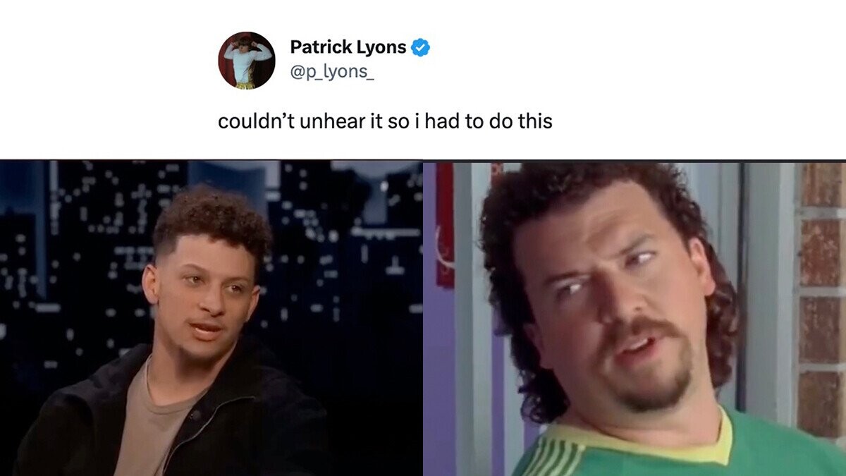 The Kansas City Chiefs quarterback appeared on Jimmy Kimmel Live! just one day after his nail-biting victory over the Philadelphia Eagles in Super Bowl LVII, bringing with him the MVP trophy and stories from the celebration that followed the big win. While Mahomes was regaling Kimmel with the details of the champions’ party, one Twitter user noticed some striking similarities between Mahomes and another party-loving, mullet-sporting sports legend.