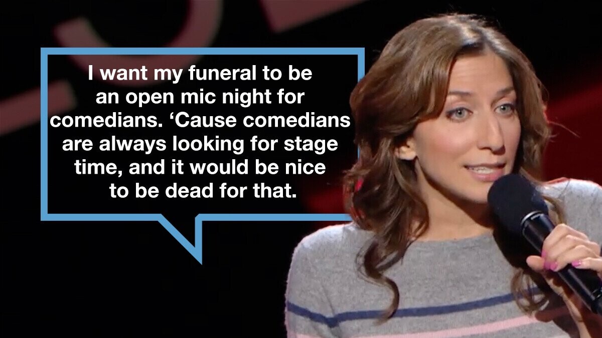 “I know I want it to be an open-mic night for comedians. It’ll be advertised in the local paper: Five dollars gets you five minutes, or whatever. Because comedians are always looking for stage time, and it’ll be nice to be dead for that.”