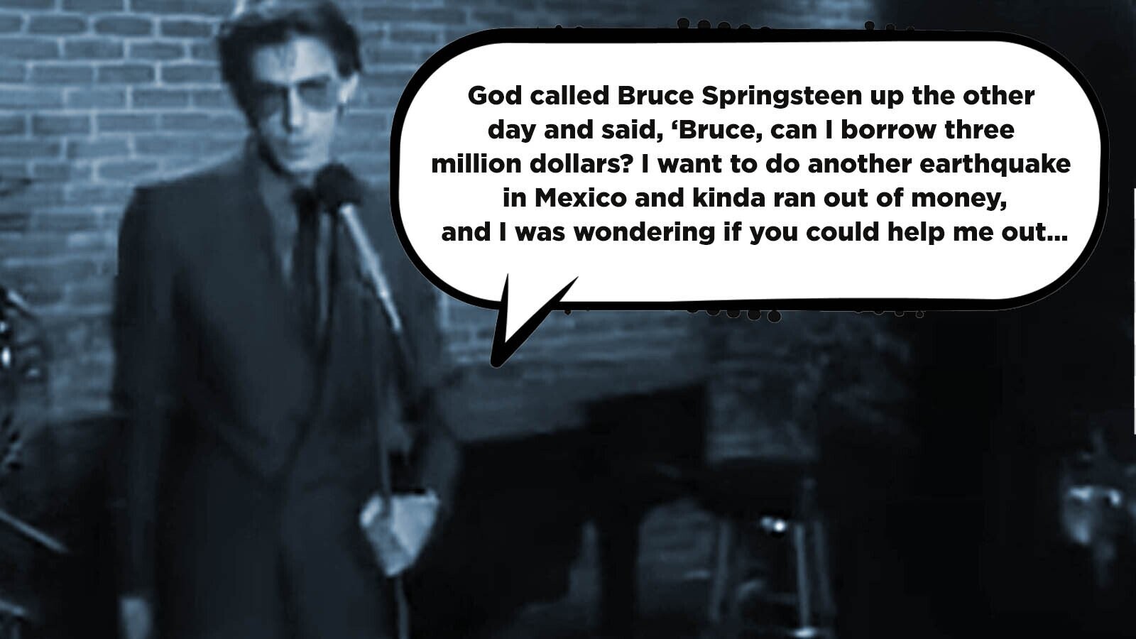 “Bruce Springsteen is gonna release a triple album at Christmas, then he's gonna walk on water. Bruce is so big now that God borrows money from Bruce Springsteen. God called Bruce up the other day and said, ‘Bruce, can I borrow three million dollars? I want to do another earthquake in Mexico and kinda ran out of money, and I was wondering if you could help me out…’