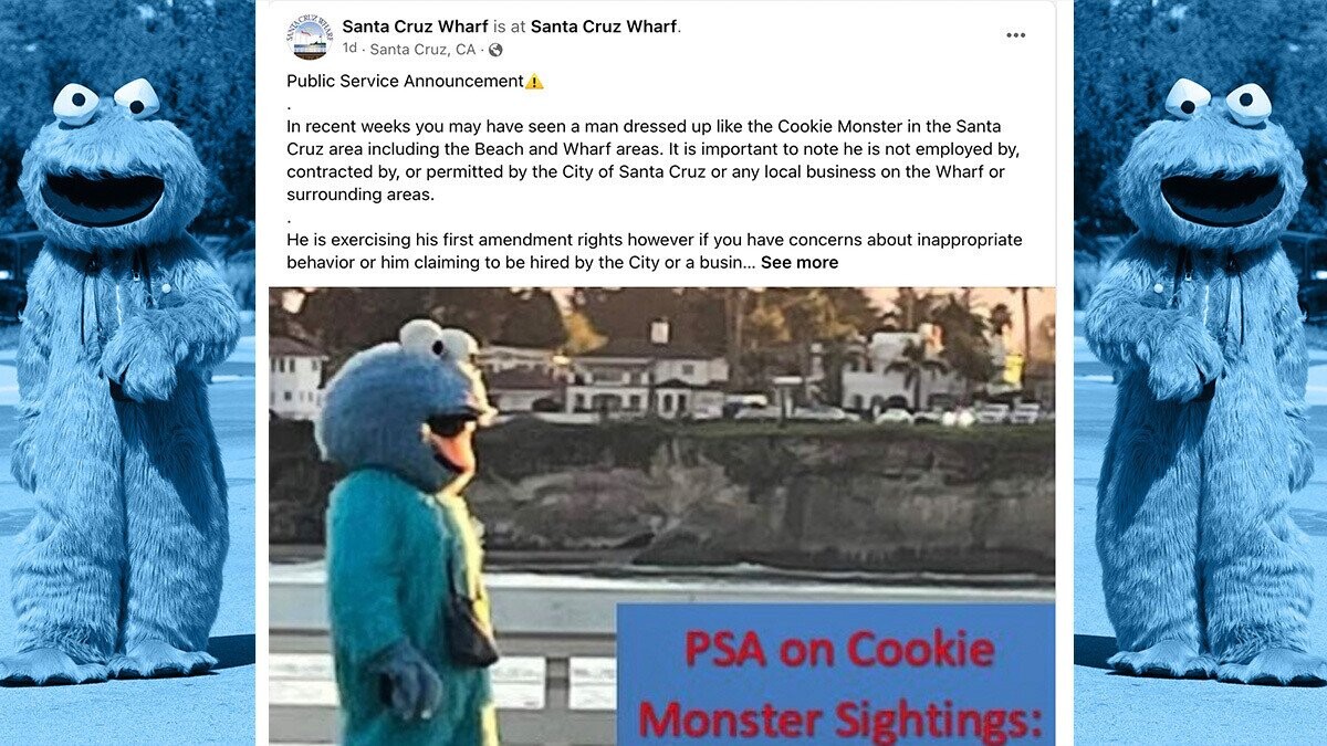 Santa Cruz residents commented on the post with their own stories of Snickerdoodle Sandler. One responder wrote, “Saw him at the wharf on Saturday by the sea lions and he told us that Honda cars kill people. Creepy is right.” Another warned, “Heads up, Mr. Sandler drives an older dark brown windowless van. Obviously everyone can exercise their own discretion, but it would seem ill-advised to approach a man dressed as Cookie Monster or go near his older dark brown windowless van.”