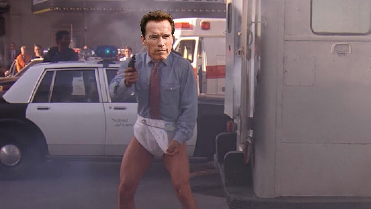 Someone with a very specific fetish will be ecstatic to see Arnold in a diaper, or to hear him shout, “Shoot him in the boobies, mommy!” And by someone, we of course mean Stallone.