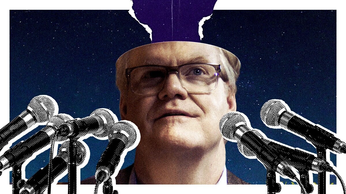 Gaffigan has been a mainstay in film and television for more than two decades — one of his first small roles was in 1999’s Three Kings — and of late he’s carved out a nice niche as a reliable indie actor. His latest provides him with one of his biggest and best platforms: Linoleum, a movie in which he has dual roles. Principally, he’s Cameron, a suburban Midwestern pushover who hosts an unsuccessful children’s science show, Above & Beyond, that airs in the middle of the night. His wife, played by Better Call Saul’s Rhea Seehorn, is about to divorce him, and as a father he seems like a bit of an ineffectual dud. Plus, he’s just found out that Above & Beyond is going to have a new host: a confident, slick and not-entirely-warm fellow named Kent (also Gaffigan). Even worse, Kent looks just like Cameron — except, you know, more successful and better-dressed.