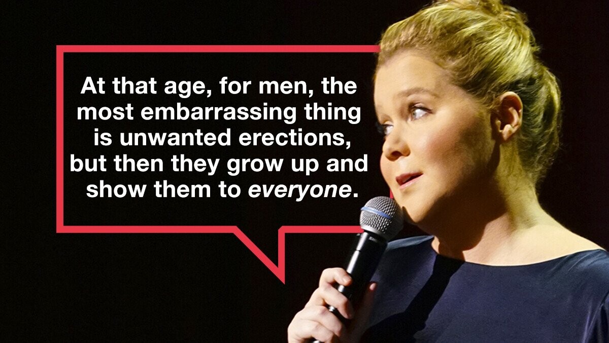 Amy Schumer has been labeled as raunchy and obscene. But her act isn’t racier than anything her male counterparts have trotted out for decades. As she told in Esquire back in 2015, “I get labeled a sex comic. But if a guy got up on-stage and pulled his dick out, everybody would say: ‘He’s a thinker.’”