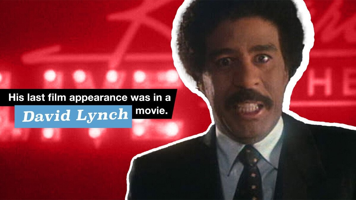 Pryor battled MS toward the end of his life, using a motorized scooter to get around. His last role ever was this brief cameo in, of all things, a David Lynch weirdfest.