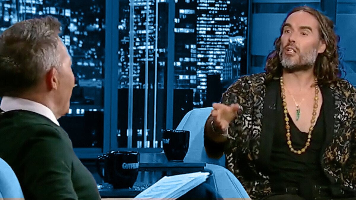Don’t get Greg Gutfeld wrong. He’s certainly not trying to cancel Russell Brand. In fact, in an op-ed love letter today on the Fox News website, Gutfeld practically builds a truth shrine in Brand’s image. “I’ve been a fan of Brand for decades,” he gushes. “Even at the start of his career, he was a brilliant brain in search of food at a time when the shelves were bare.”