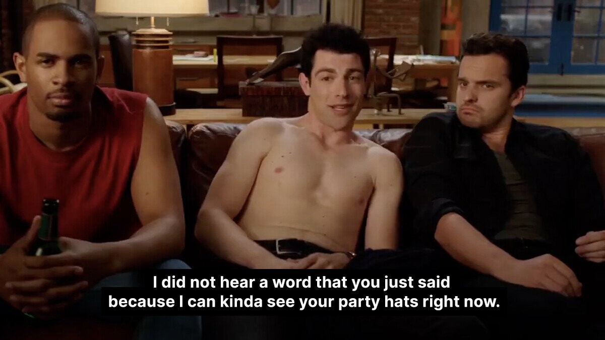However, a lot of this sitcom’s most colorful words and phrases originated thanks to the network’s Standards and Practices Department — the people who determine what is safe to air and what should be censored lest it corrupts the innocent to their very core. While these censorhounds are usually a pain in the butt for many series, the folks over at New Girl took it all in stride. “Some of the beauty of writing for a network is that there are so many things you can’t do, but that sort of pushes you to do things you didn’t even think you could do to get around that,” creator Elizabeth Meriwether told The New Republic. “It has been a really good exercise for me… in learning, like: ‘Okay, so we can’t show boobs, we can’t say the word dick, we can’t just say the most shocking thing.’ We have to come up with a way around it.”