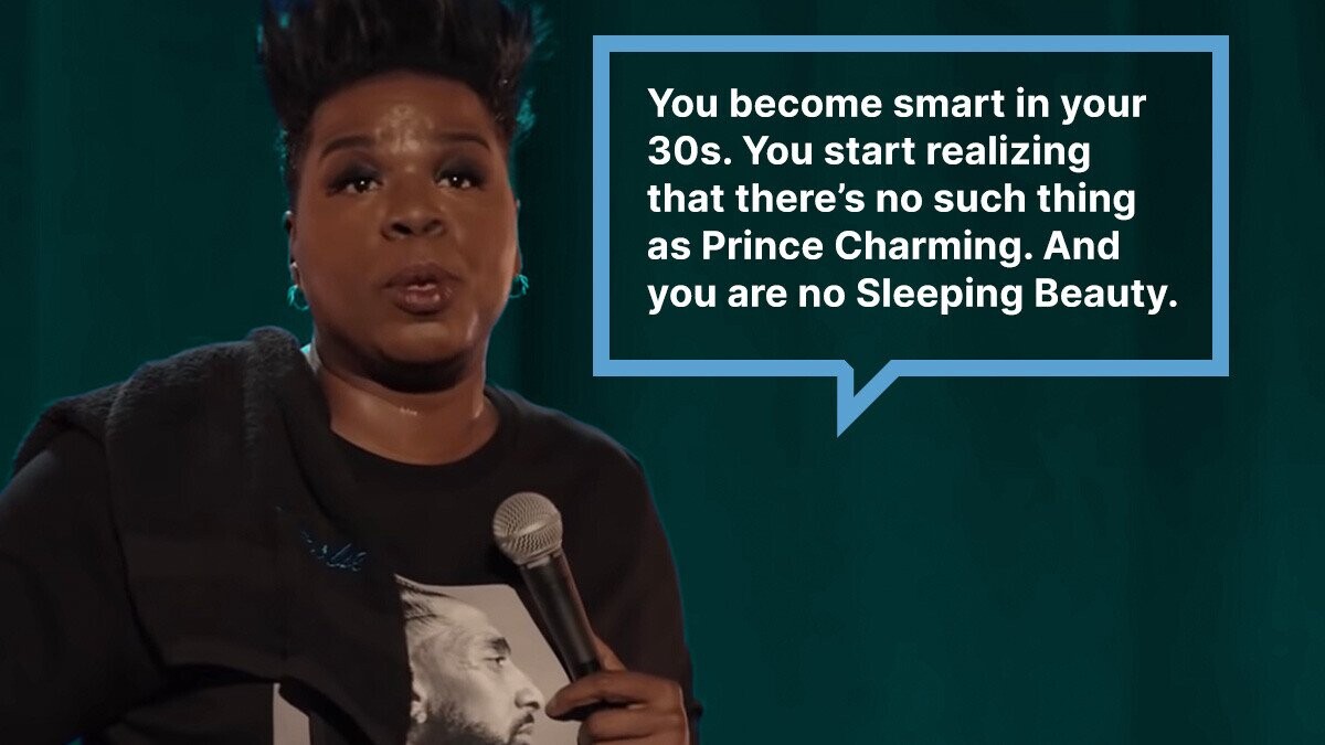 “Enjoy your 20s, bitch, ‘cause soon you’re going to be in your 30s. That’s when you’re gonna have to make them real decisions. You’re gonna have to decide if you’re going to stay a ho, or clean yourself up and become a respectable young lady. Gotta get your reputation back in your 30s. Maybe date a pastor. Maybe do some community service, instead of servicing the community. That’s when you become smart — in your 30s. You start realizing that there’s no such thing as a Prince Charming. And you’re no Sleeping Beauty. Man, I knew I wasn’t no Sleeping Beauty. I have been told several times, ‘You are very unattractive when you sleep.’”