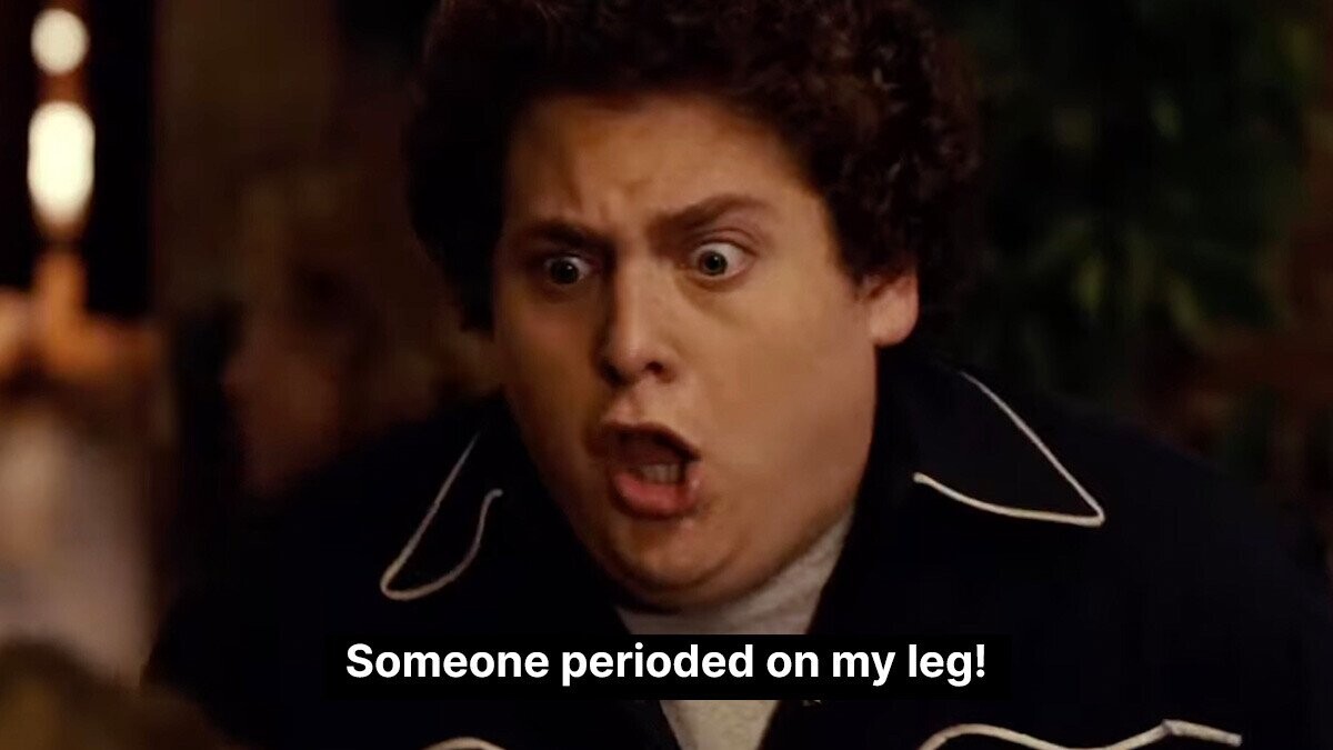 About one-third of the events of Jonah Hill and Michael Cera’s journey to the big party are bodily fluids, so a period joke wasn’t necessarily out of the question. Periods are funny! If anything, it’s an argument for why more people who have them should be writing comedy, because it’s almost certain none of them were involved in the scene in which Hill’s character grinds with a girl on the dance floor and later discovers that she perioded on him.