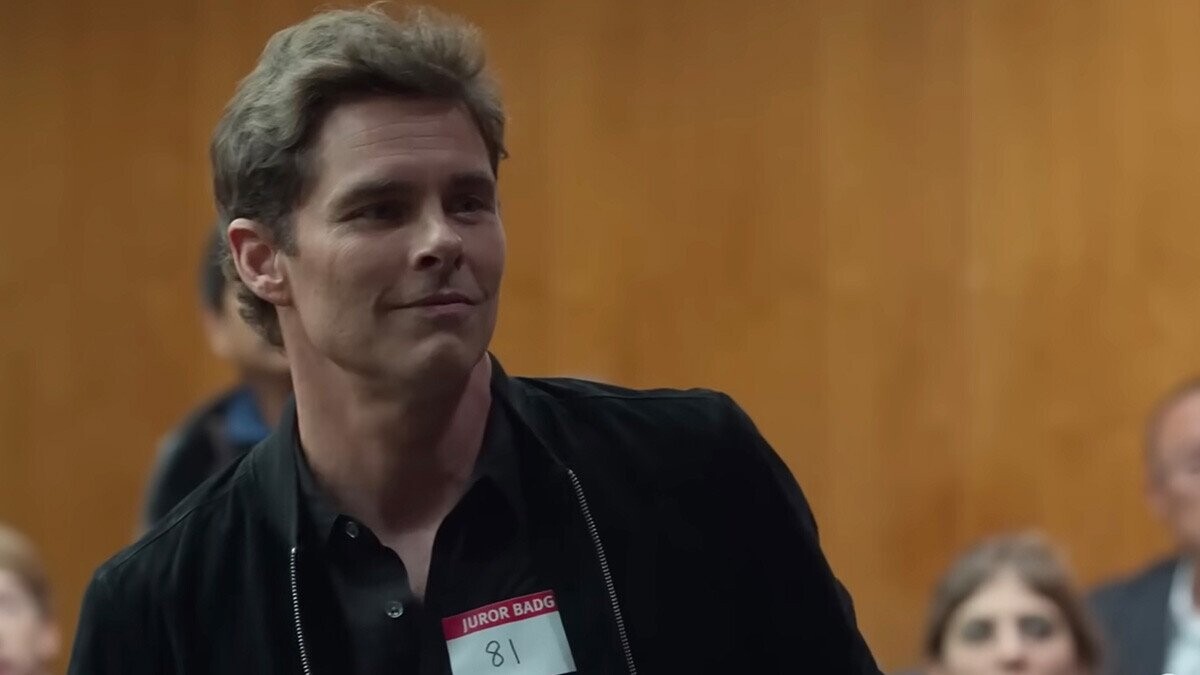 Jury Duty seems, at first, as though it could be another mean-spirited outing, with Ronald the butt of the joke. Less than a minute into the series premiere, the premise has been gravely spelled out in a series of text screens, and outlandish events from future episodes — a juror being wheeled out by EMTs, an elderly juror applauding a witness in court — have been montaged. In a solo interview, Ronald comments that “crazy stuff keeps happening!” Crazy stuff, in fact, starts immediately: A prospective juror says she shoplifted candy from a nearby gift shop; another is so intense about his hydration that he causes his neighbor to change seats; the actor James Marsden, as himself, reports to answer a summons. But based on this edit, no one is out to make Ronald look foolish. Most of the people around him — from the Mormon who doesn’t want to serve because he’ll miss his first vacation with his girlfriend that their parents aren’t also taking, to the high school teacher who tries to claim his students as children who’d suffer if he were seated, to James Marsden trying to act like a big shot in his label-less incognito baseball cap — are far bigger fools.