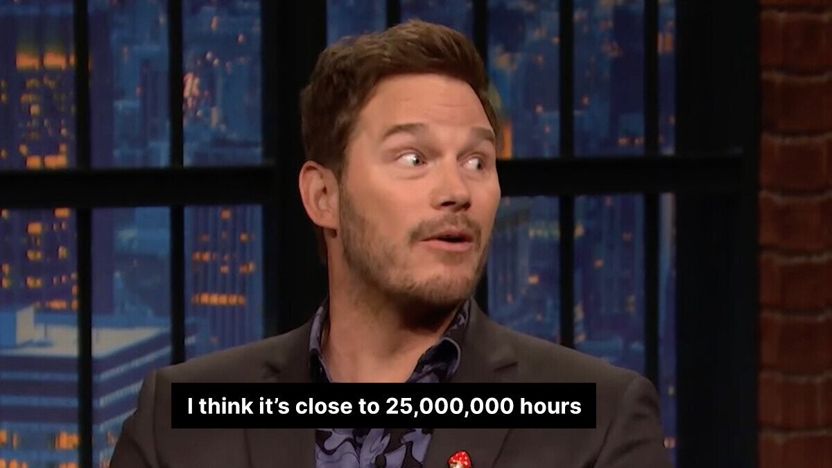 Last night on Late Night with Seth Meyers, an enthused Pratt appeared to promote The Super Mario Bros. Movie, and the Parks and Recreation star made a bold claim about his relationship with his title character’s history. When Meyers asked Pratt if he played the original Super Mario Bros. video game as a kid, Pratt replied, “If I had to count up the hours, and this is no hyperbole, I think it’s close to 25 million hours that I’ve played Super Mario Bros.”