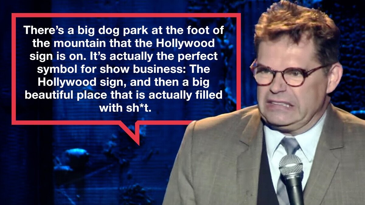 “There’s a big dog park at the foot of the mountain that the Hollywood sign is on. It’s the perfect symbol for show business: The Hollywood sign, and then a big beautiful place that is actually filled with shit.”