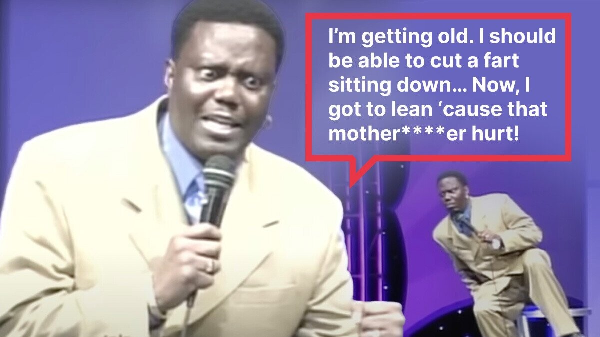 “I’m getting old. I should be able to cut a fart sitting down. Just break it off. *FART NOISE* Now, I got to lean ‘cause that motherfucker hurt! Or my liver is gonna be swollen all goddamn night! Let me tell you, breakin’ wind is a bitch.”