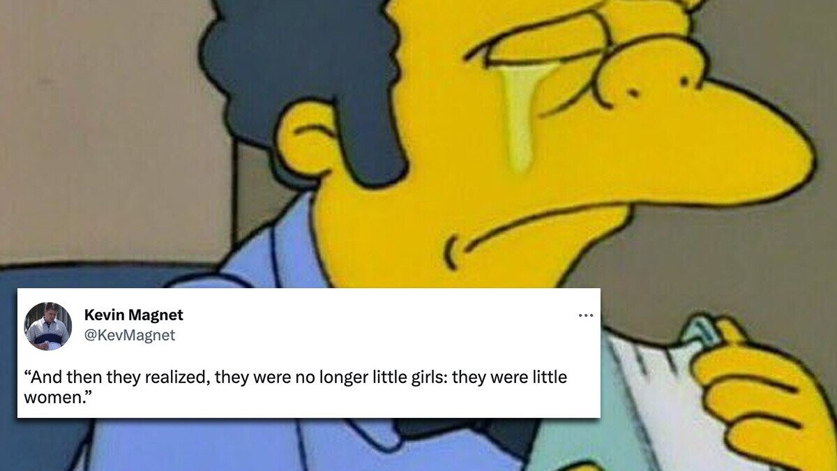 If your only exposure to great works of American storytelling was through the greatest one of all, The Simpsons would have you thinking many incorrect things about a many classics. Earlier today, a startling number of Twitter users admitted that, for years since the episode “Homer Loves Flanders” premiered in 1994, they thought that Louisa May Alcott’s timeless coming-of-age novel Little Women ended with the line uttered by a tearful Moe Szyslak to a group of homeless men: “And then they realized, they were no longer little girls: they were little women.”