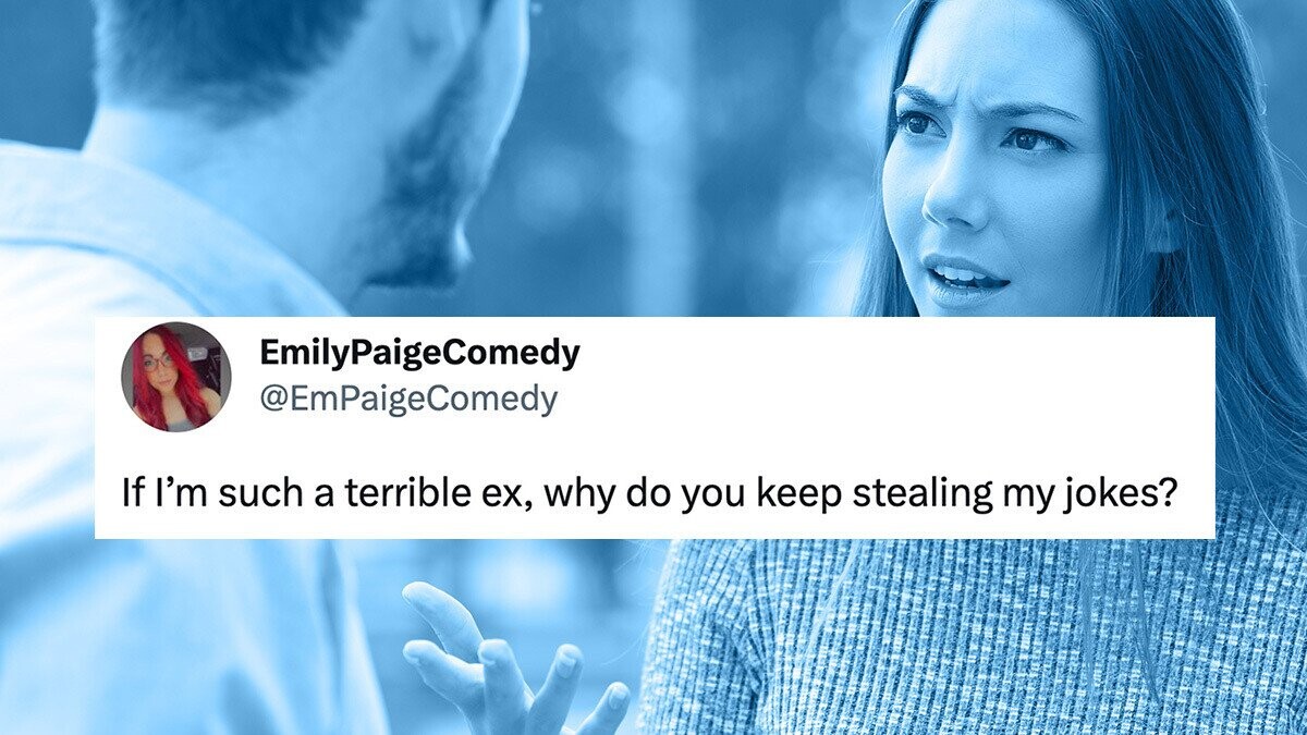 New Jersey stand-up Emily Paige recently found that her ex-boyfriend has been stealing her tweets, slightly adjusting the phrasing like a plagiarizing high school student, then passing them off as his own jokes months after the original post. Yesterday, in an attempt to match her former man’s pettiness, Paige tweeted side-by-side screenshots of the original riffs and their inadequate knockoffs in an attempt to reclaim custody of her comedy.