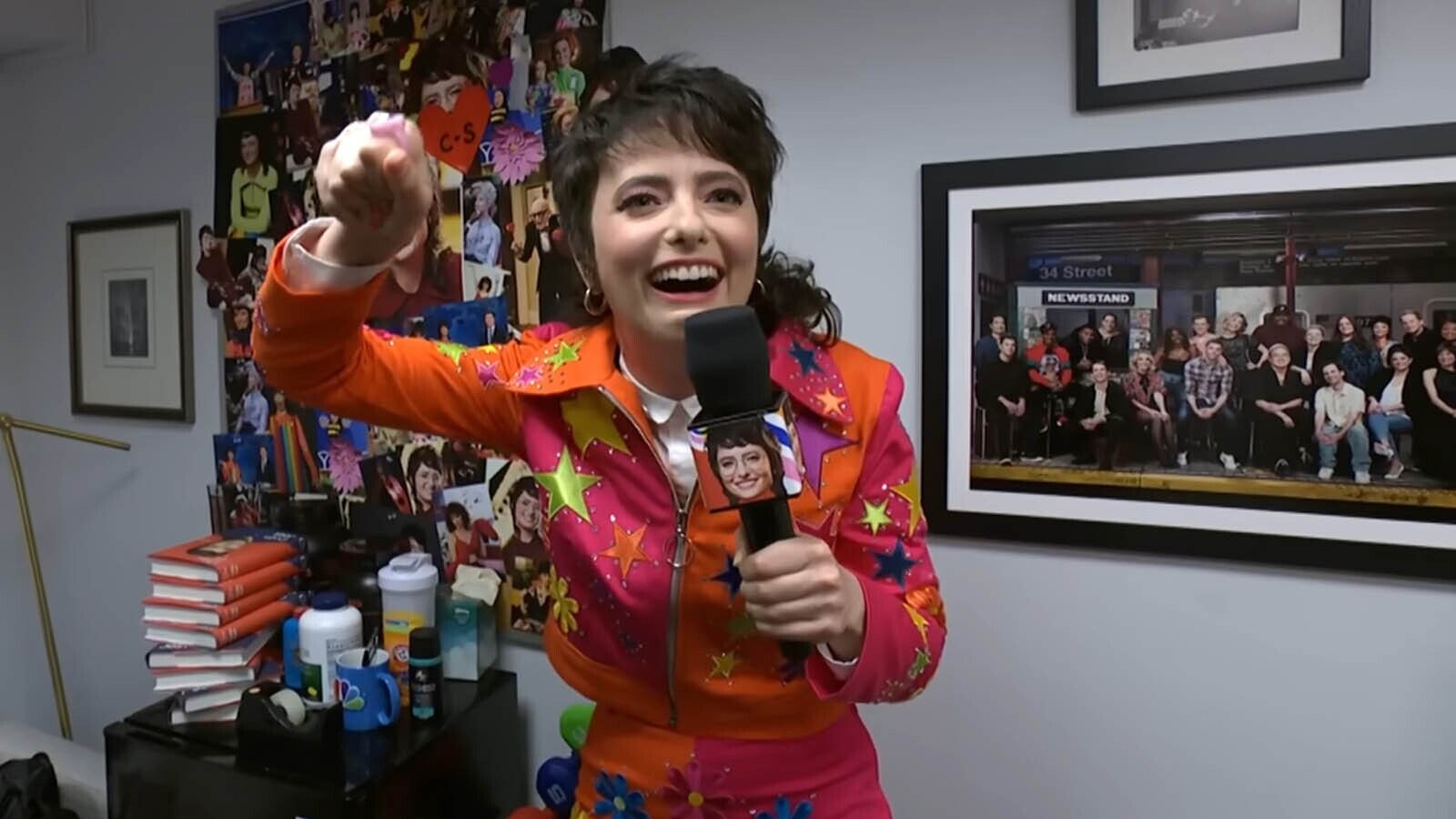 “Initially I wanted to go into a bathroom and go to a toilet that was filled with piss,” Sherman confessed, a bit that would fit right in her comically grotesque Sarah Squirm stage shows. The plan was to ask Jost, “Colin, is this your piss? It's really dehydrated!” The reaction in the writers’ room: “Oh, okay. Haha. Maybe not.”