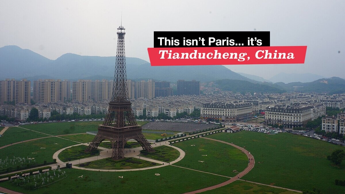 There’s a bit of a trend in China for recreating overseas places. Sometimes it’s just one building — leading to occasional lawsuits about “architectural piracy” — and sometimes it’s a deliberately orchestrated bid to turn one place into quite another. The phenomenon has been given a name, “duplitecture,” coined by Bianca Bosker in her book Original Copies: Architectural Mimicry in Contemporary China. (She also coined the term “simulacrascapes,” which is both hard to say and looks like it has the word “crap” in it, even though it doesn’t.)