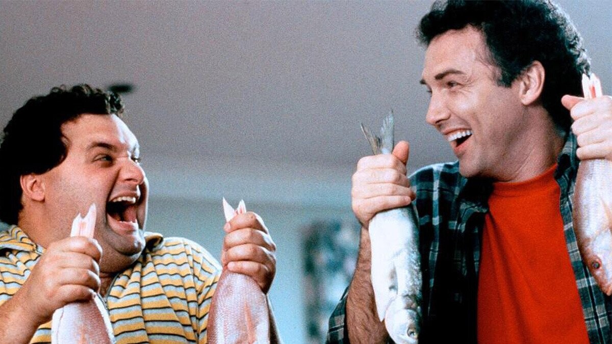 During the scene where Mitch and Sam are planting fish in a house, several people come to the house to conduct a drug deal as Mitch and Sam are in the next room. The main buyer reacts to the smell of the fish, and the seller believes that the buyer is wearing a wire. What proceeds is an unseen shootout between the buyers and sellers as Mitch and Sam hold fish in absolute terror. The scene was Norm’s idea, saying he wanted a completely static shot for a full 60 seconds.