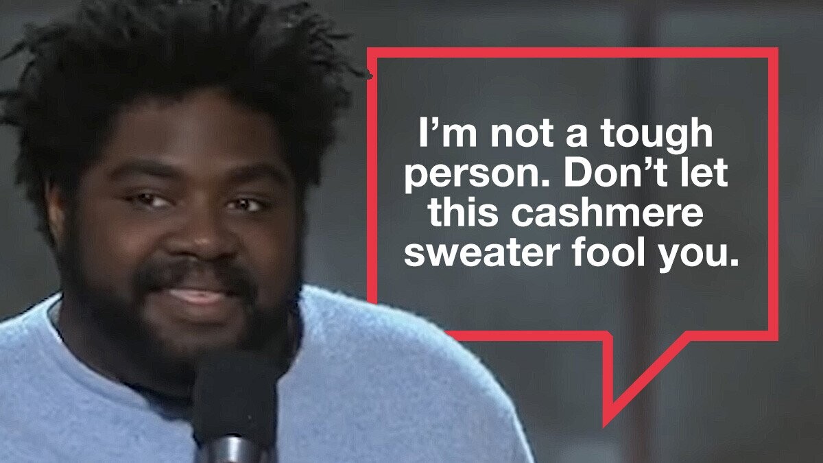 “Not used to a large Black man that giggles like an Asian princess? That’s just how I was made. I’m not a tough person. Don’t let this cashmere sweater fool you.”