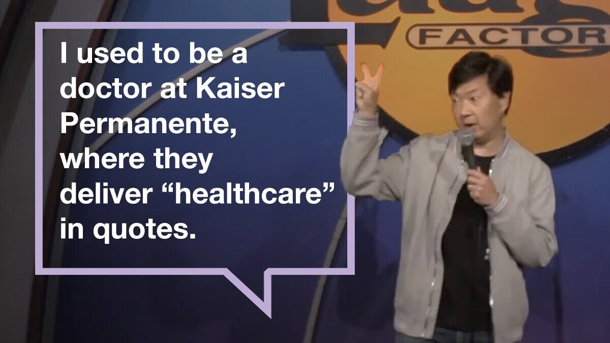 “I used to be a doctor at Kaiser Permanente, where they deliver ‘health care’ in quotes.”