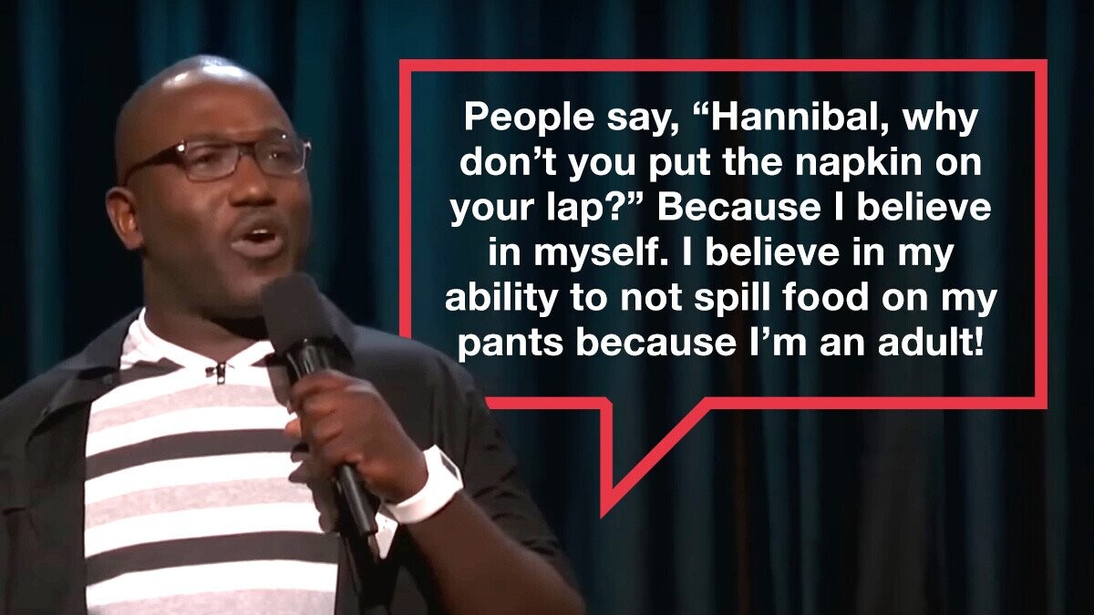 “Whenever I eat at a restaurant, I never put the napkin on my lap. And people say, ‘Hannibal, why don’t you put the napkin on your lap?’ Because I believe in myself. I believe in my ability to not spill food on my pants because I’m an adult!”