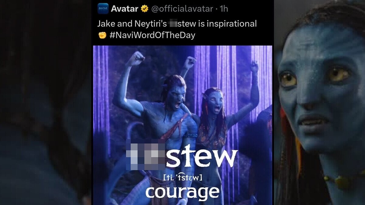 No, this isn’t a portmanteau, nor does it appear to be a joke or social media blunder. It’s a seemingly authentic, Disney-approved term. Given Cameron’s documented horniness for the Na’vi, we’re not necessarily surprised. Naturally, the now-deleted tweet spurred a number of jokes and memes at the Avatar social team’s expense.