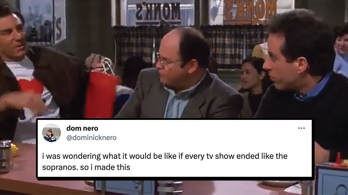 For roughly the last 16 years, people on the internet have been arguing over whether the last episode of Seinfeld or The Sopranos deserves the dubious distinction of “Least Satisfying Finale for a Beloved Series in TV History.” This maniac, meanwhile, wondered, “Why not both?”