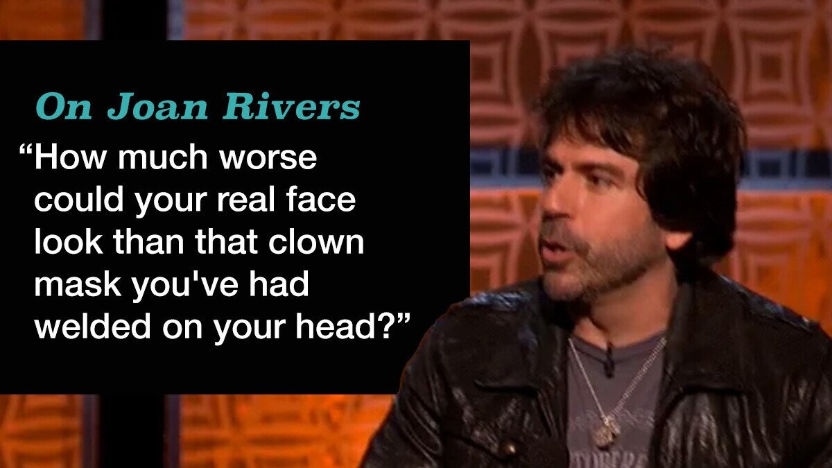 If you’re going to be an insult icon, you have to be able to take as good as you give, and Rivers was a phenomenal sport. When she had her own roast, it was an honor to anyone invited, and a warning to bring their A-game. Greg Giraldo knocked it out of the park as to be expected, since he seemed like an heir apparent of Rivers before his untimely death. He took on Rivers’ heavily modified appearance, a common target, but with enough creativity to make it stick.
