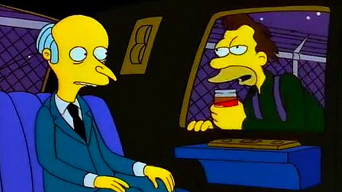 On The Simpsons, the employees of the Springfield Nuclear Power Plant enjoy a night at a baseball game paid for by their boss, Mr. Burns, complete with beer. Well, Lenny had a few and wanted to show his appreciation to the boss with the most loving yet threatening thumbs-up ever animated.