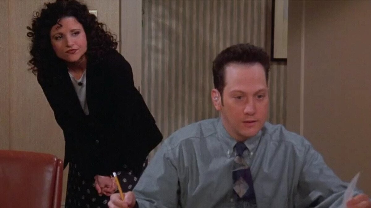 In the much-maligned Season Seven episode “The Friar’s Club,” Elaine becomes obsessed with proving that the hearing-impaired new guy in the office (played by Schneider) is actually a Munchausen-level faker, a vendetta that gets misinterpreted for ableism by her boss and then later attraction by Schneider himself.