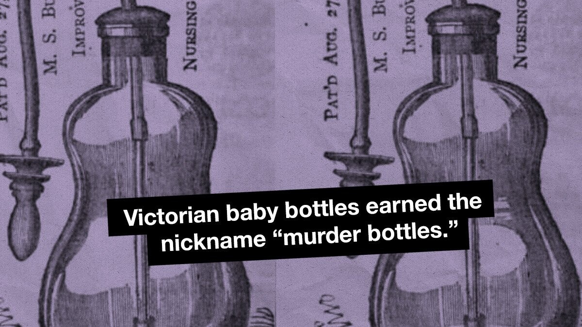 So, why don’t we let babies drink milk from long rubber hoses nowadays? Mainly because a setup like that isn’t at all easy to clean. Not that people tried very hard — you could let it fester for two or three weeks without cleaning, according to common wisdom. These bottles now have another name, given by historians with knowledge of their consequences: murder bottles.