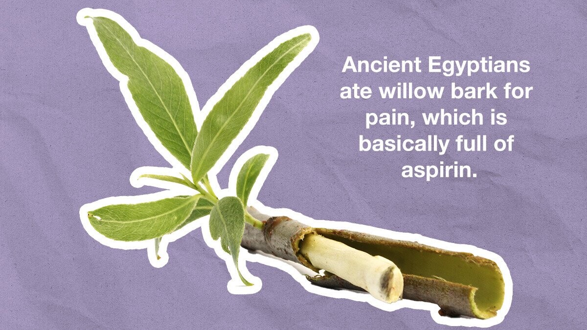But numerous ancient civilizations held willow bark in particularly high regard for pain treatment. Many years later, we’d find out that gnawing on a bit of willow actually was chemically sound, if inefficient. Willow bark is filled with salicylic acid, the active ingredient in aspirin. By pulping up some unpleasant wood bits, they were essentially taking nature’s Bayer. That same salicylic acid would later be isolated from willow bark by Johann Buchner and perfected by Felix Hoffman into the neat little pills future pain-feelers would pop.