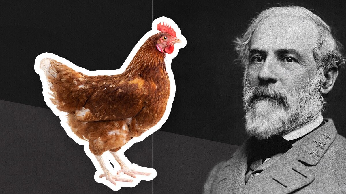 The Confederate Army received regular shipments of chickens as food. In 1862, one of these hens broke away from the flock and ducked into the most impressive tent, which was owned by one General Robert E. Lee. She laid an egg here, and when Lee entered the tent later and spotted the egg, he figured this chicken could have some use beyond being immediately slaughtered as food. He named the hen Nellie.