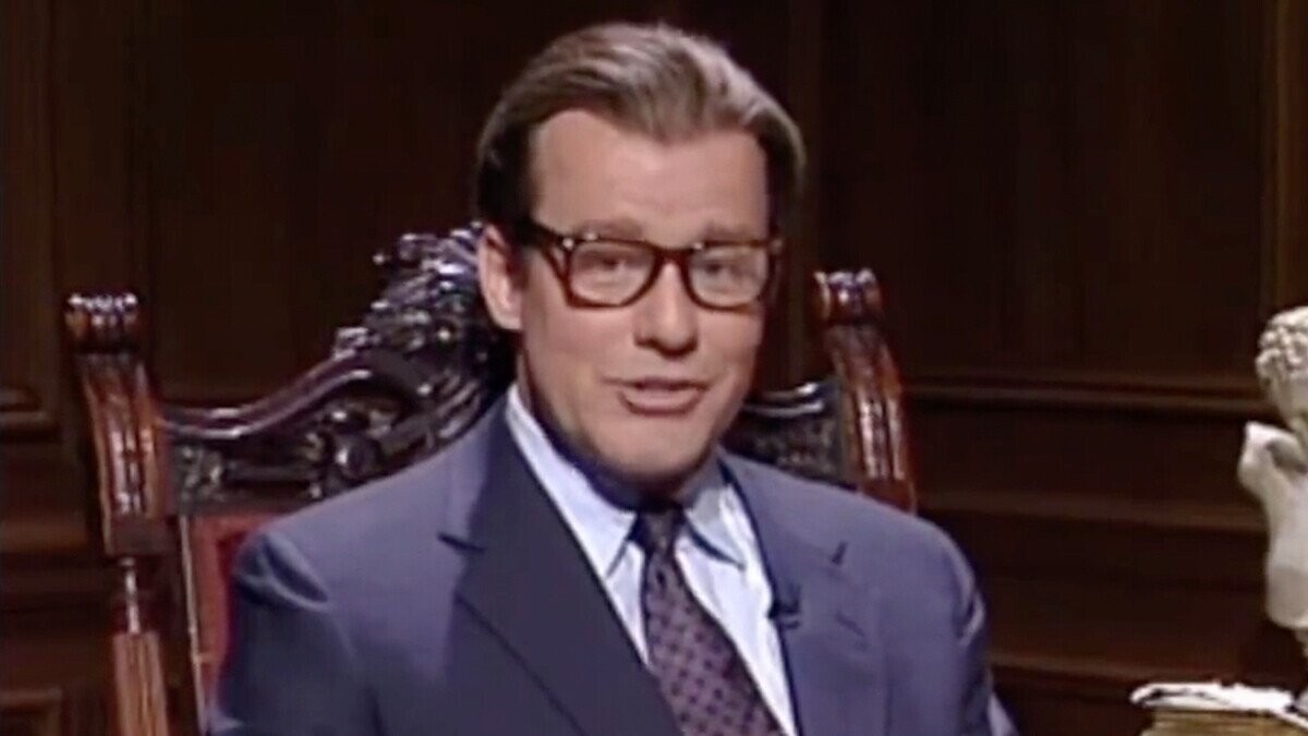 Hartman plays a role he could do in his sleep — an unctuous arts show host putting on cultural airs while discussing an icon of the American cinema. He introduces Charlie Chaplin, played by Carvey, as a typical silent film comedian, all attitude and high-stepping as he enters a bar looking for a beer. In hushed tones, Hartman describes Chaplin’s genius at work, continually revising the scene by stealing funny bit after funny bit from Lovitz’s hapless waiter. First, he steals the bit player’s top hat, then his Hitler mustache, his twirling cane, and his pigeon-toed walk until he’s appropriated the Little Tramp persona entirely. Chaplin’s final piece of comedy brilliance? Kicking the waiter out of the scene entirely once there was nothing left to steal.