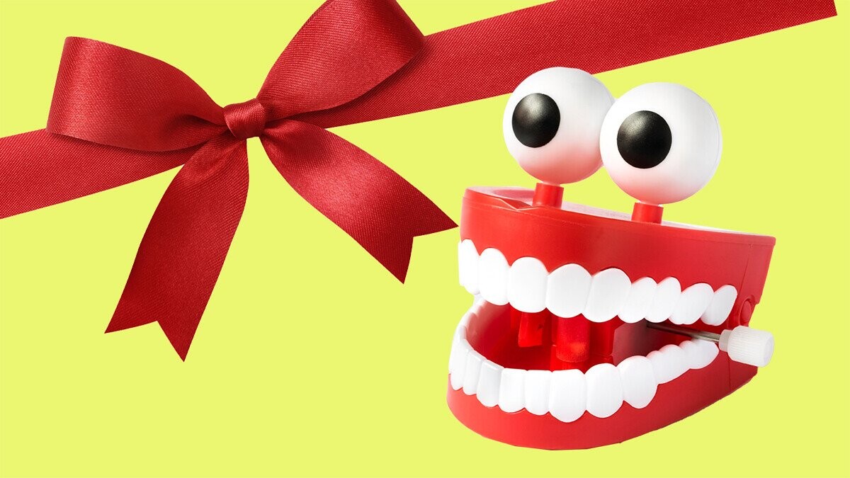 Advice: “Our boxes are great for converting a real gift into a prank gift, so if you want to give a sincere gift and still get that prank gift reaction, they’re perfect. But when speaking about prank gifts in general, there are three points to consider: absurdity, danger and disgust. Absurdity is about being strange and funny — like our Cheek Speak suction cup, which sticks your phone to your face. For danger, a joy buzzer, for example, has a sense of danger to it. As for disgust, toilet humor always works very well. At White Elephant parties, the goal is to get something that gets passed around and laughed at, and if you can create that, you’ve won.