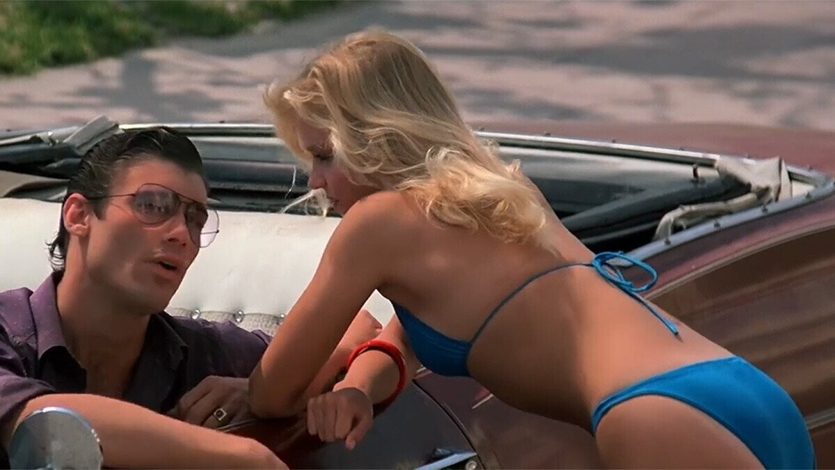 This pedestrian has no name or lines, but this sight leaves a certain kind of viewer saying, “Who is she? Does she have any other scenes?” This cultured cinephile would research and learn the actress is named Tammy Lynn Leppert, and she also acted in another movie from that year, called Spring Break. She received no official credit for that film, but she still appeared prominently on the movie poster.