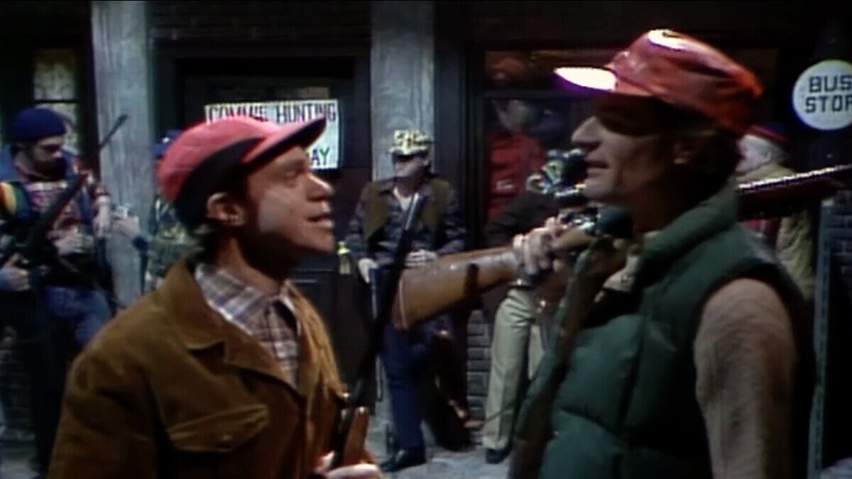 The sketch starts off bad enough, with Joe Piscopo and Charles Rocket as the world’s most stereotypical rednecks. It’s Commie Hunting Season for Uncle Lester and Jim-Bob, as the two rifle-toting morons discuss how they’re going to track and kill communists. How will they do that? If the commies are demonstrating, then it’s easy: “It’s like shooting fish in a barrel.”