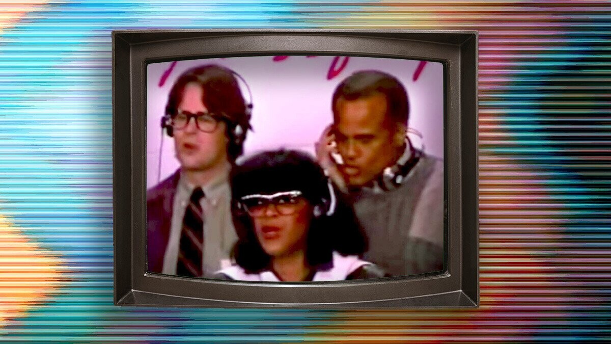 The number one movie on Netflix right now is The Greatest Night in Pop, a documentary all about the recording of “We Are the World,” the 1985 charity single featuring some of the biggest recording artists of all-time, plus Dan Aykroyd. Yes, crooning amongst legendary musicians like Bob Dylan, Diana Ross and Michael Jackson is the future star of Coneheads. You can see him in the back row next to American treasure Harry Belafonte, he’s the one dressed like Dwight from The Office for some inexplicable reason.
