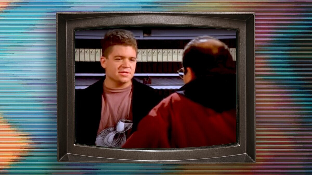 In the Seinfeld scene, Oswalt plays a clerk at Champagne Video. George wants to rent Breakfast at Tiffany’s and Patton has to inform him that the video has been checked out. He offers to put the video on reserve, but that’s not good enough for George — he wants Patton to call the other renter and ask them to bring the video back. “I’m sorry,” the comic patiently replies. “It doesn’t work that way.” Oswalt’s clerk then goes to help another customer, giving George the chance to steal a glimpse at the store computer to discover who has his movie.