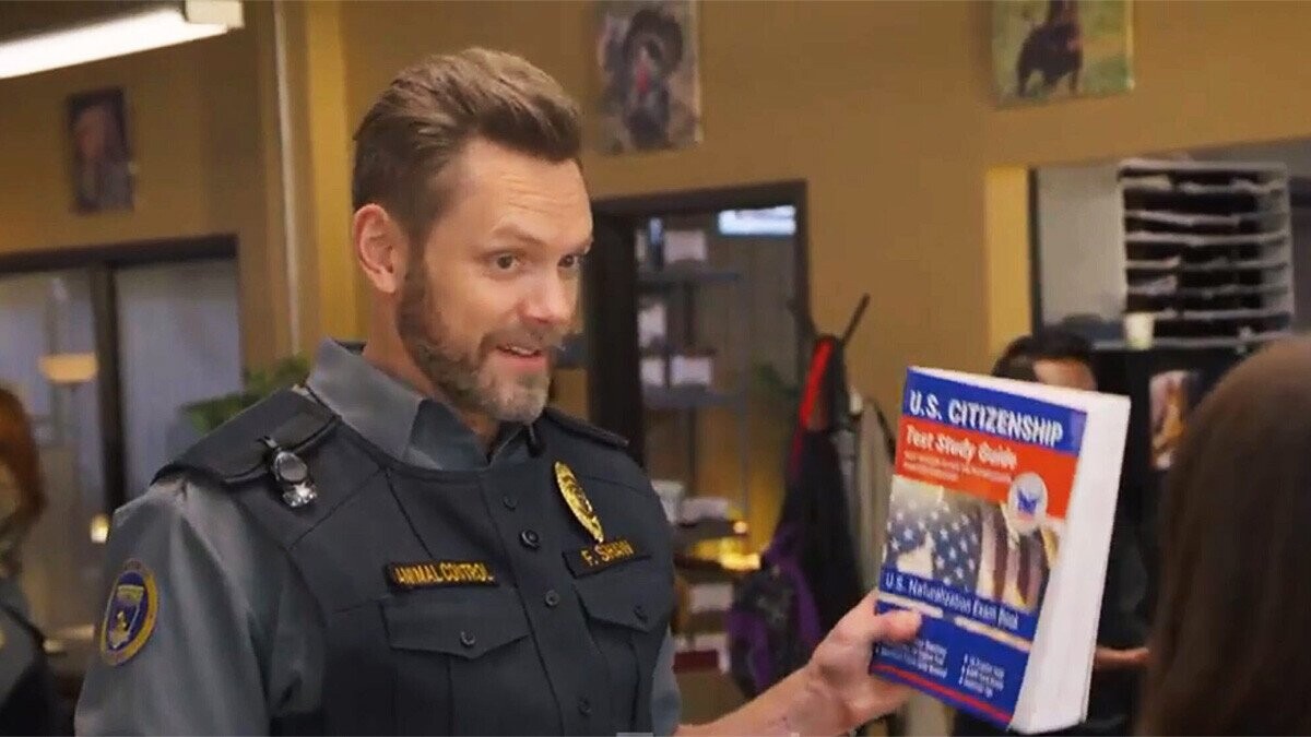 This season on Animal Control, immigration to the U.S. has also been top of mind for Victoria (Grace Palmer). In a shocking moment in the premiere earlier this month, Victoria’s co-workers find out that the sexual adventurer they thought they knew had been married this whole time — a fact that comes to light when her husband serves her with divorce papers. New Zealand native Victoria explains that it was just a green-card marriage, but it does mean she’s going to have to figure out another legal pathway to U.S. residency. In last week’s episode, Victoria’s colleague Frank (Joel McHale) reminds the audience of her situation by heaving a citizenship study guide off her desk and needling her about not having cracked it yet.