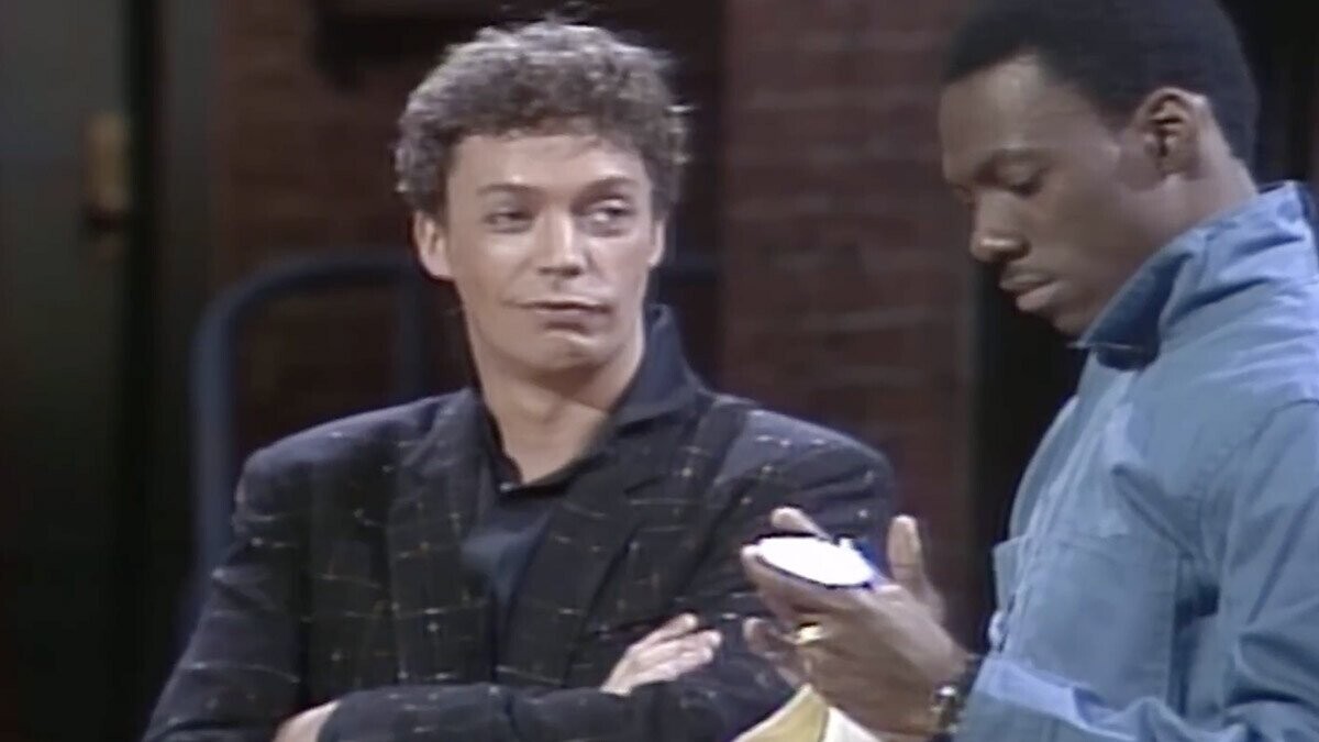 This all happened on the day before the episode, leaving a whopping “15-minute hole in the show” (that must have been some Hitler sketch). The despondent writers gathered together; in desperation, Sheffield turned to Curry and asked, “Don’t you do Mick Jagger?” Curry responded: “Yes, I do.” After demonstrating his “hilariously funny” impression of the Rolling Stones frontman, Sheffield and his writing partner Barry Blaustein “stayed up all night” writing a sketch in which Mick Jagger is the host of a tacky network variety show, with guests like Frank Sinatra (played by Joe Piscopo).