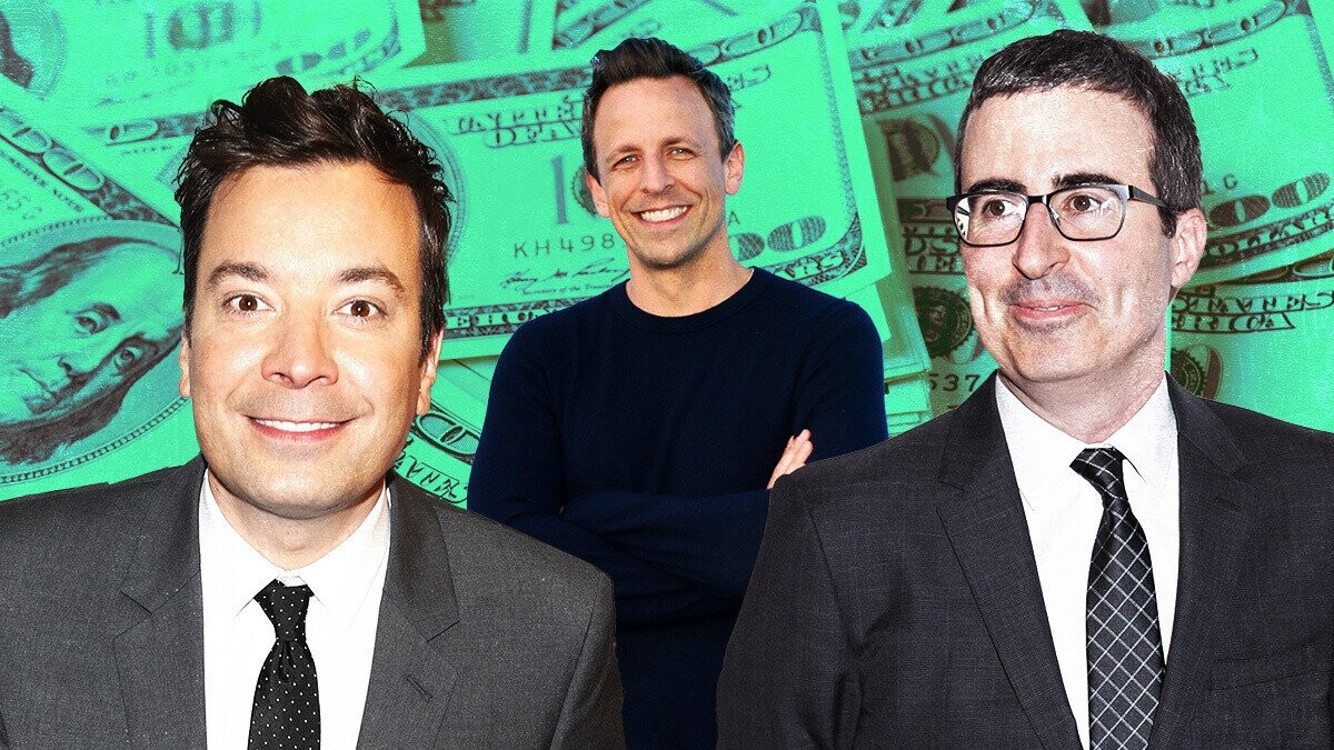 Of all the late-night hosts, or at least the ones in Strike Force Five, Meyers earns by far the least. His reported $5 million a year lags way behind the estimated $15-16 million salaries for Fallon, Jimmy Kimmel and Stephen Colbert. And it’s not within shouting distance of the $30 million deal John Oliver has at HBO.