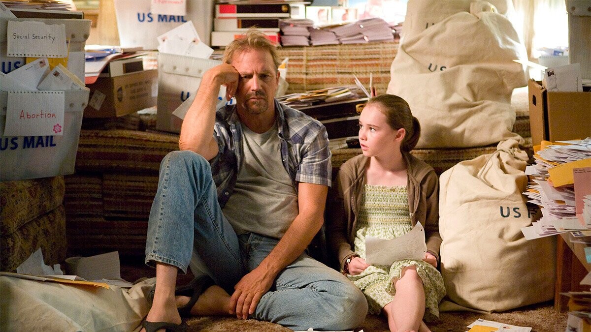 Costner plays Bud, an apolitical schlub who is guilted into voting in the presidential election by his daughter. Through a series of laughably improbable series events that make Waterworld seem grounded by comparison, Bud’s ballot has to be recast, and the election is so close that this random asshole’s vote will decide the whole thing.