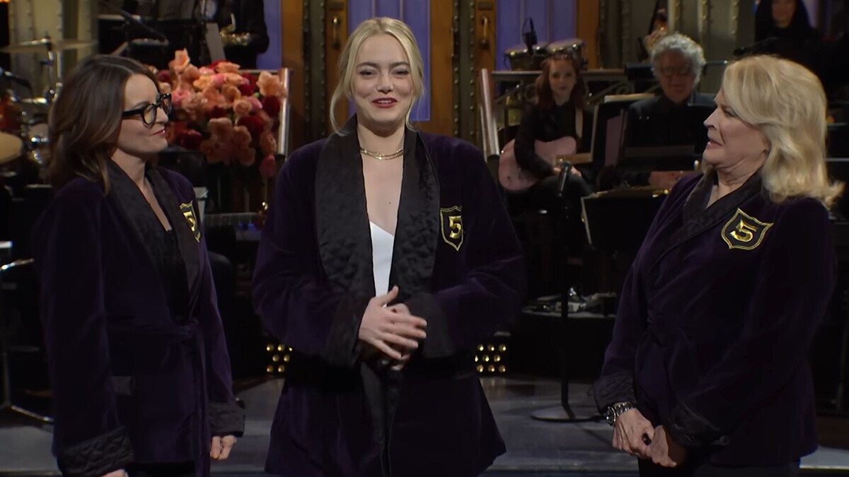 And when Emma Stone received her Five-Timers jacket in 2023, Fey and Candice Bergen remarked that it was a great moment in “SNL herstory,” making it seem like a genuine honor, not just a comedic bit that, originally, was as much about honoring hosts as it was about dunking on Chevy Chase and Joe Piscopo.