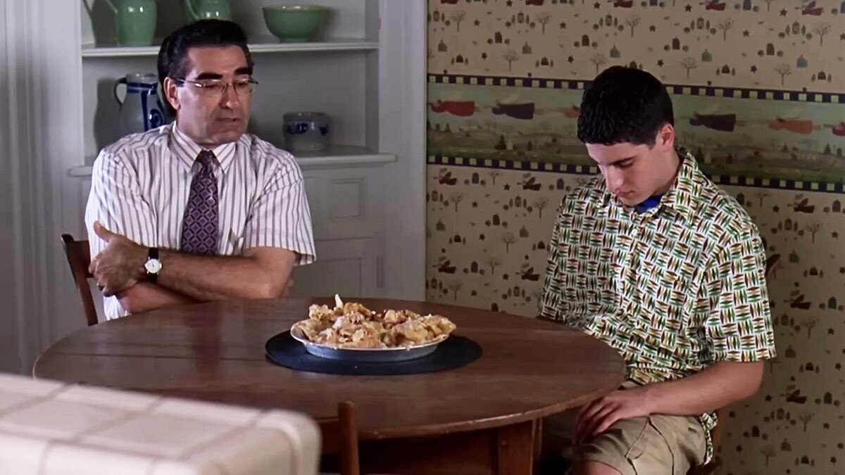 After a friend tells him third base feels like “warm apple pie,” horny high schooler Jim Levenstein (Jason Biggs) tries to replicate the experience with a freshly baked pie that’s cooling in his kitchen. Unfortunately, his dad (Eugene Levy) walks in just as Jim is fully “inside” the pie.
