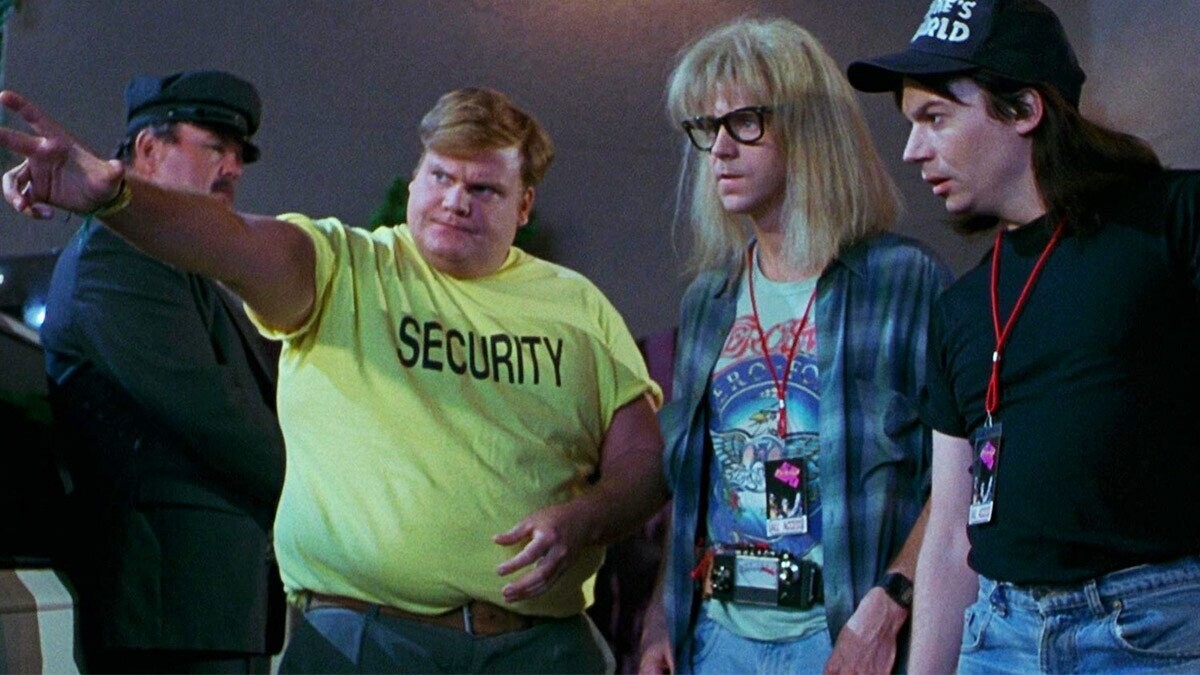 Wayne’s World is full of memorable cameos, from Alice Cooper, to Meatloaf, to the T-1000. But perhaps the best of the bunch is Chris Farley as the security guard who randomly provides a conspicuous chunk of exposition outlining where and when famed music producer Frankie “Mr. Big” Sharp will be in the near future.