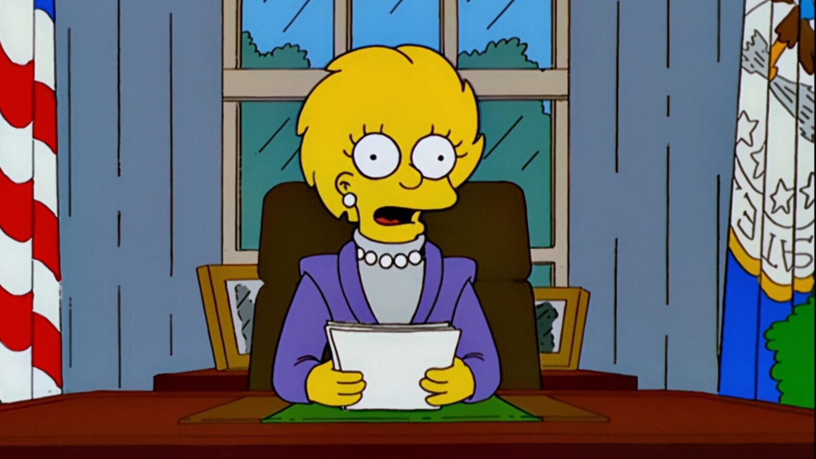 This particular “prediction” stems from the 2000 episode “Bart to the Future,” the one where Bart is granted a magical vision of his adulthood in which he’s a Jimmy Buffett-loving burnout while Lisa is the country’s commander-in-chief.